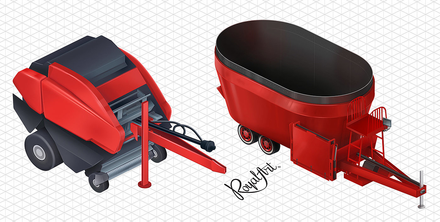 Isometric illustrations for dairy farming