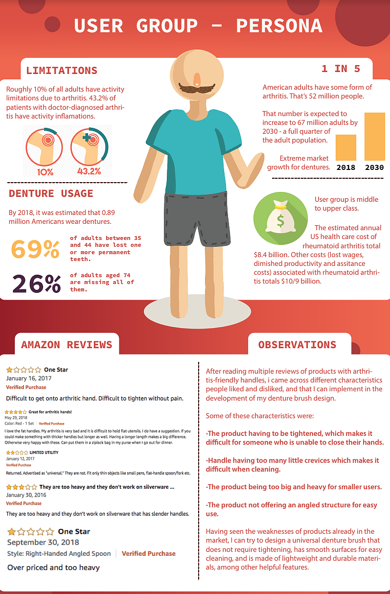 Denture brush design for people with arthritis