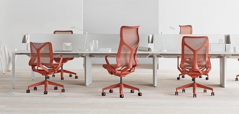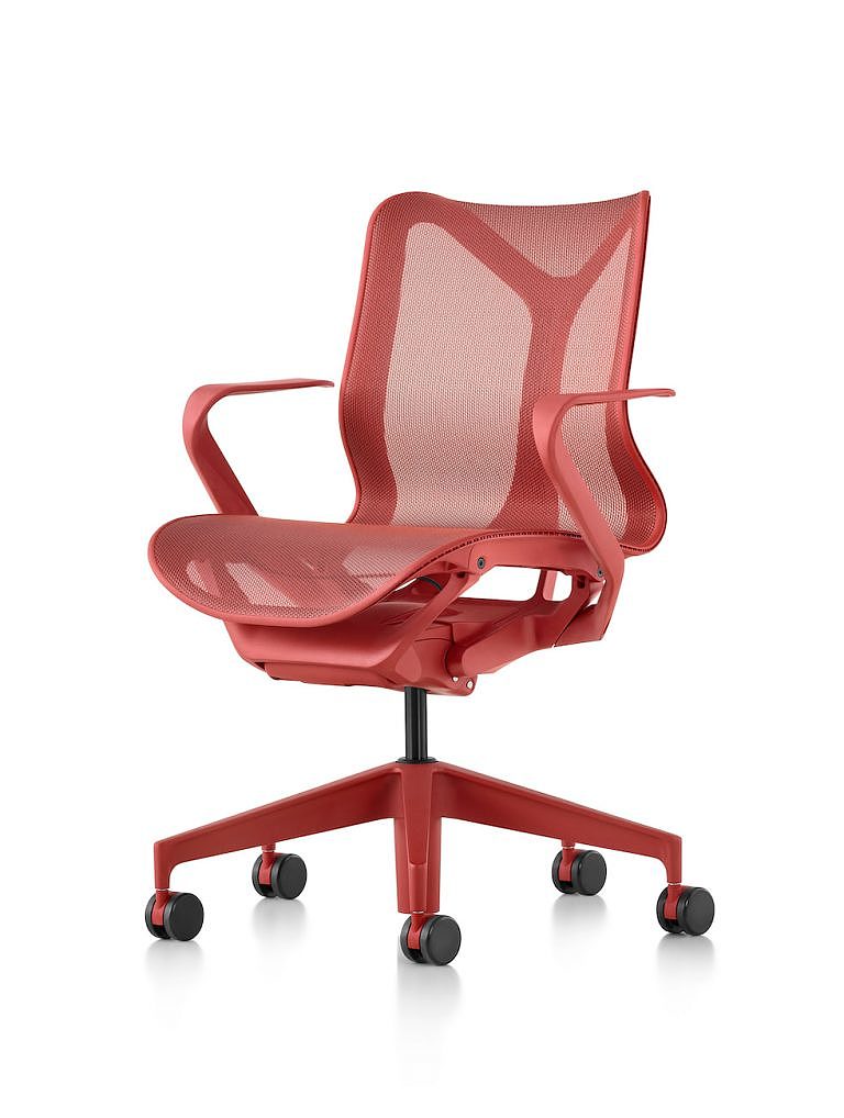 Armrest Chair Desks Ergonomics Herman Miller Hinge Mechanical Mesh Office Organic Part Line pastel Plastic Red Stitching Textile / Fabric Tonal White