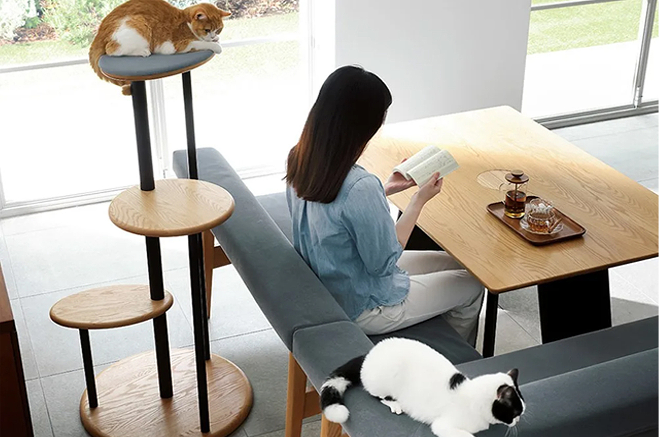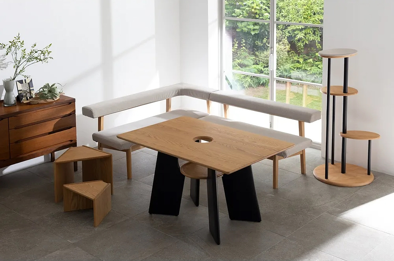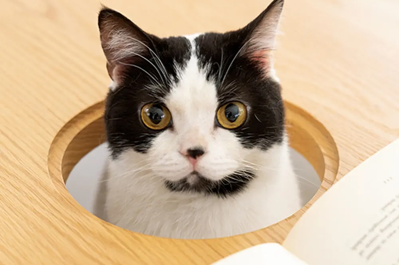This cat-centered table design features a cavity and hidden shelf for your pets to perch while you WFH!