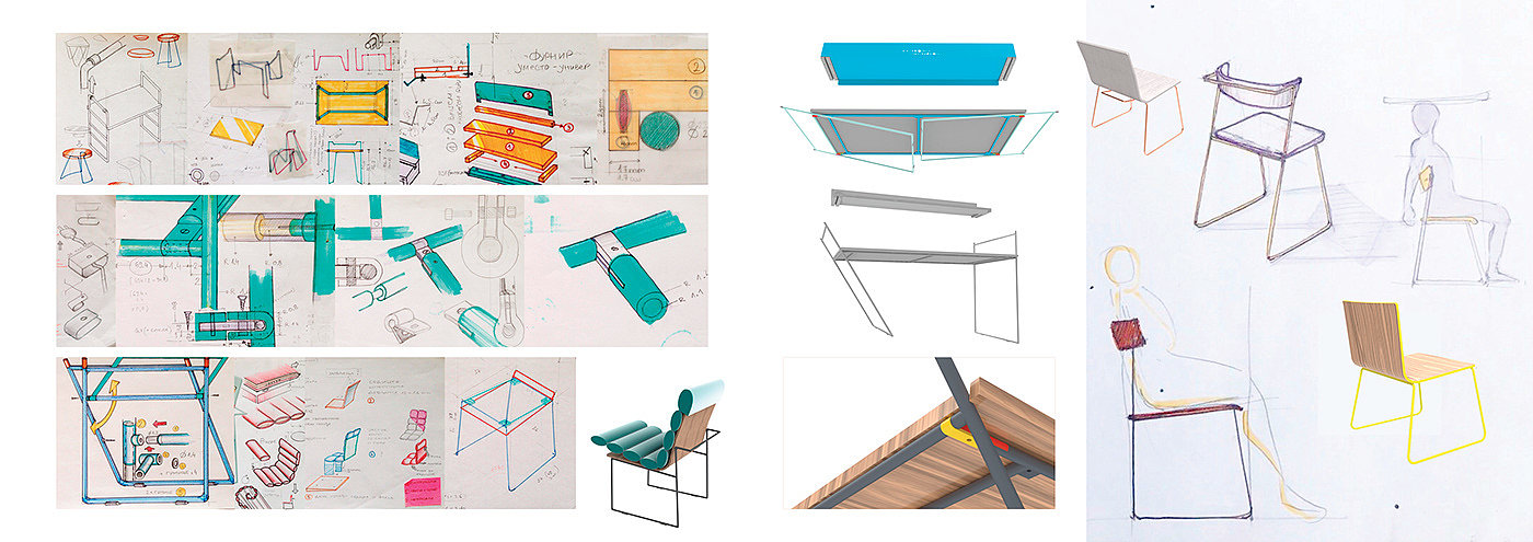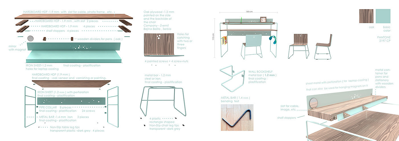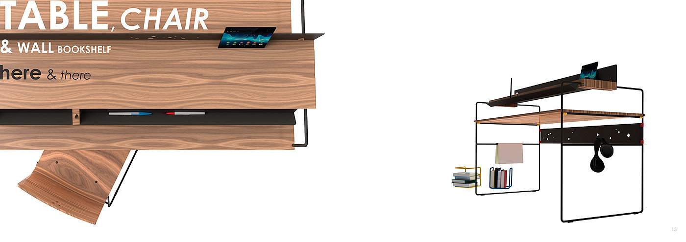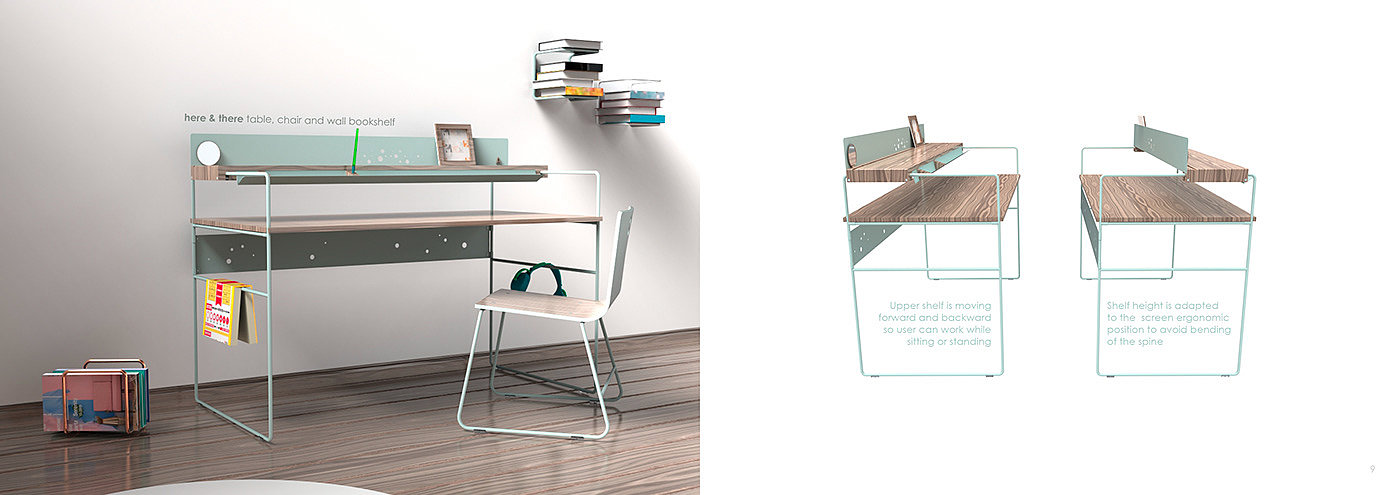 Table, chair and bookshelf HERE & THERE