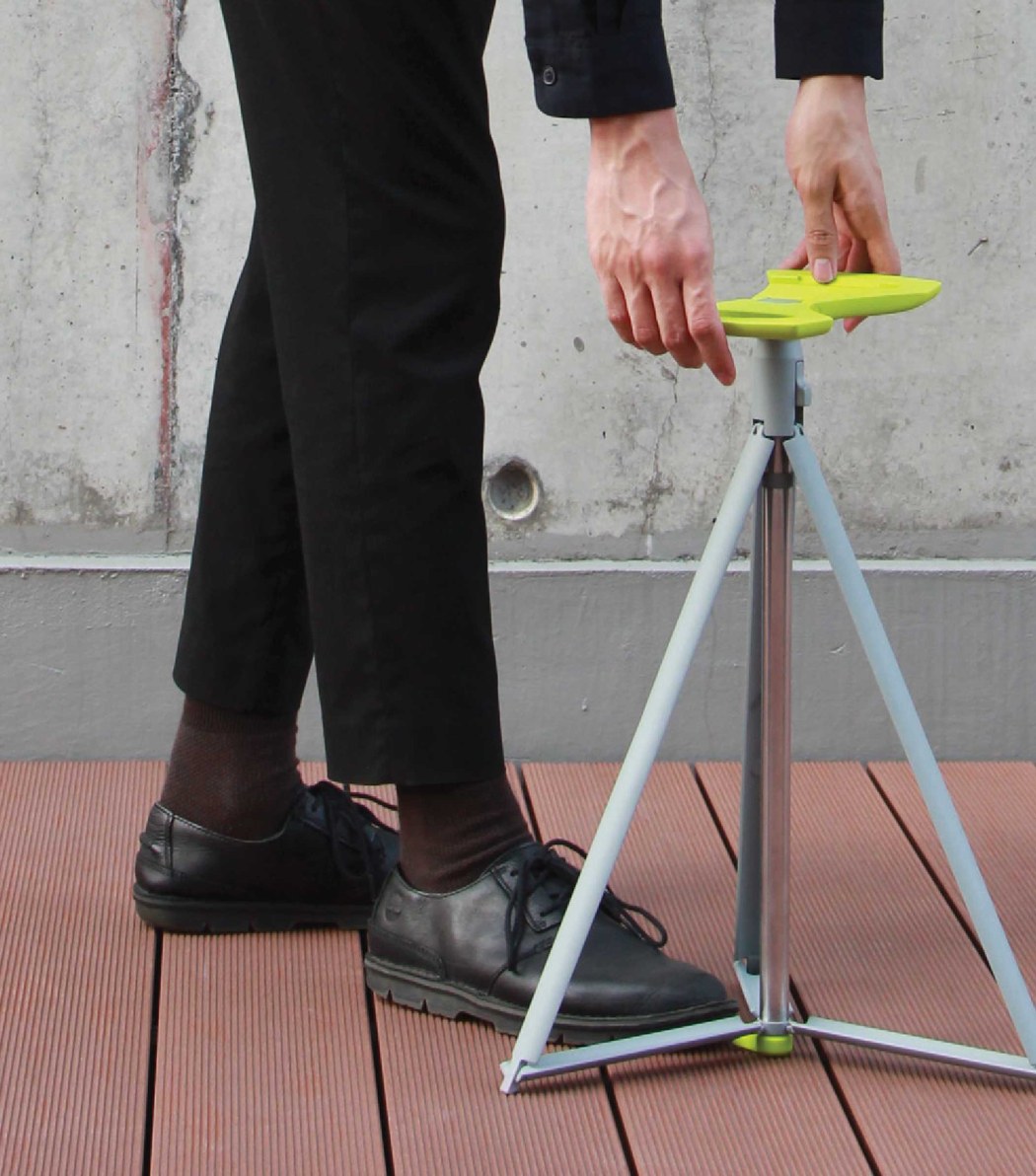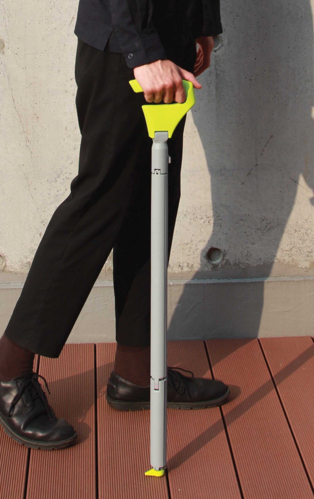 Walking cane by day, resting stool when needed!