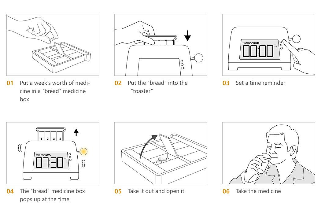 A bread-shaped pill box pops up from this toaster to playfully remind you to take care of yourself!