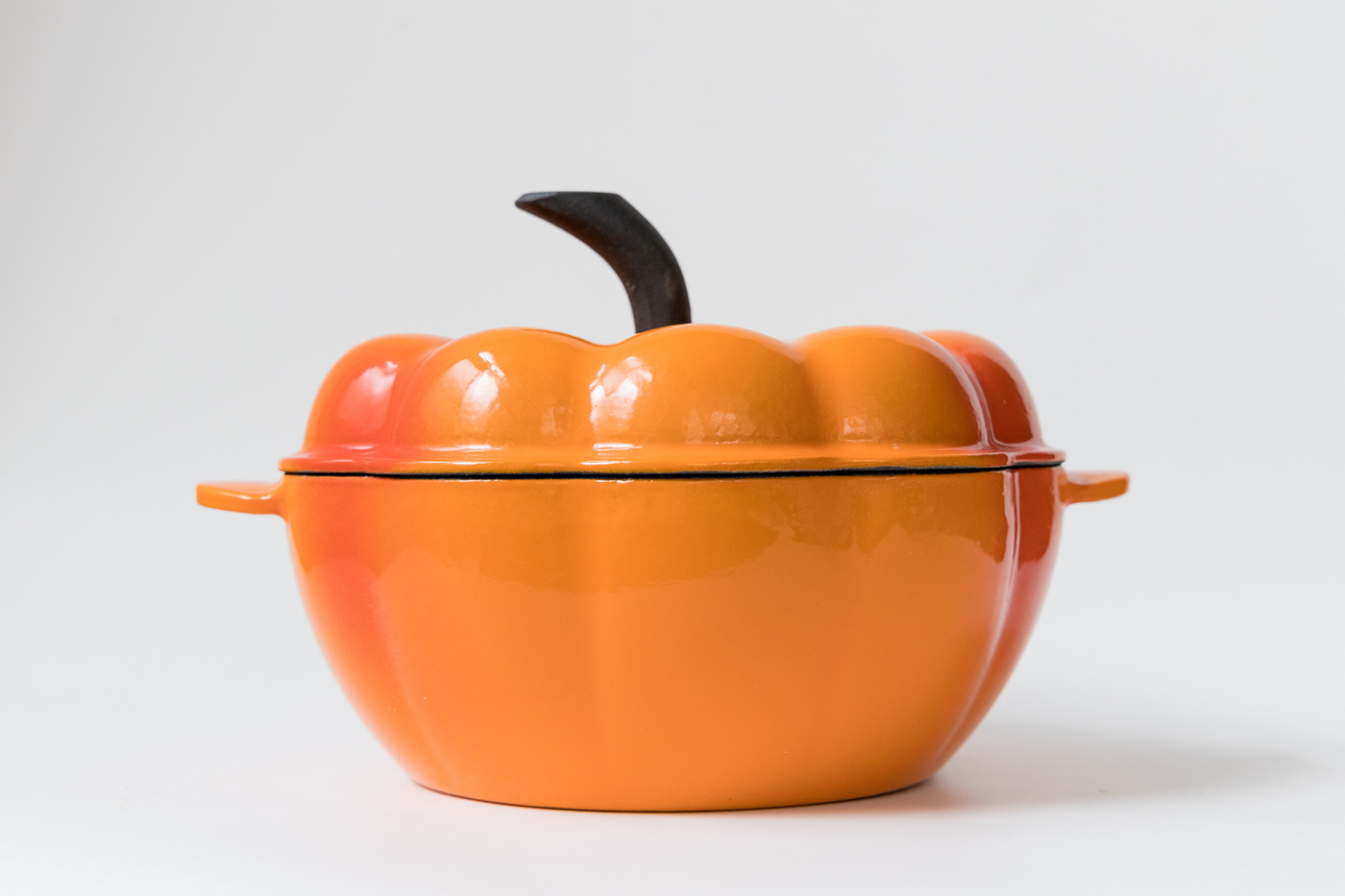 Product photography pumpkin shape cast iron pot