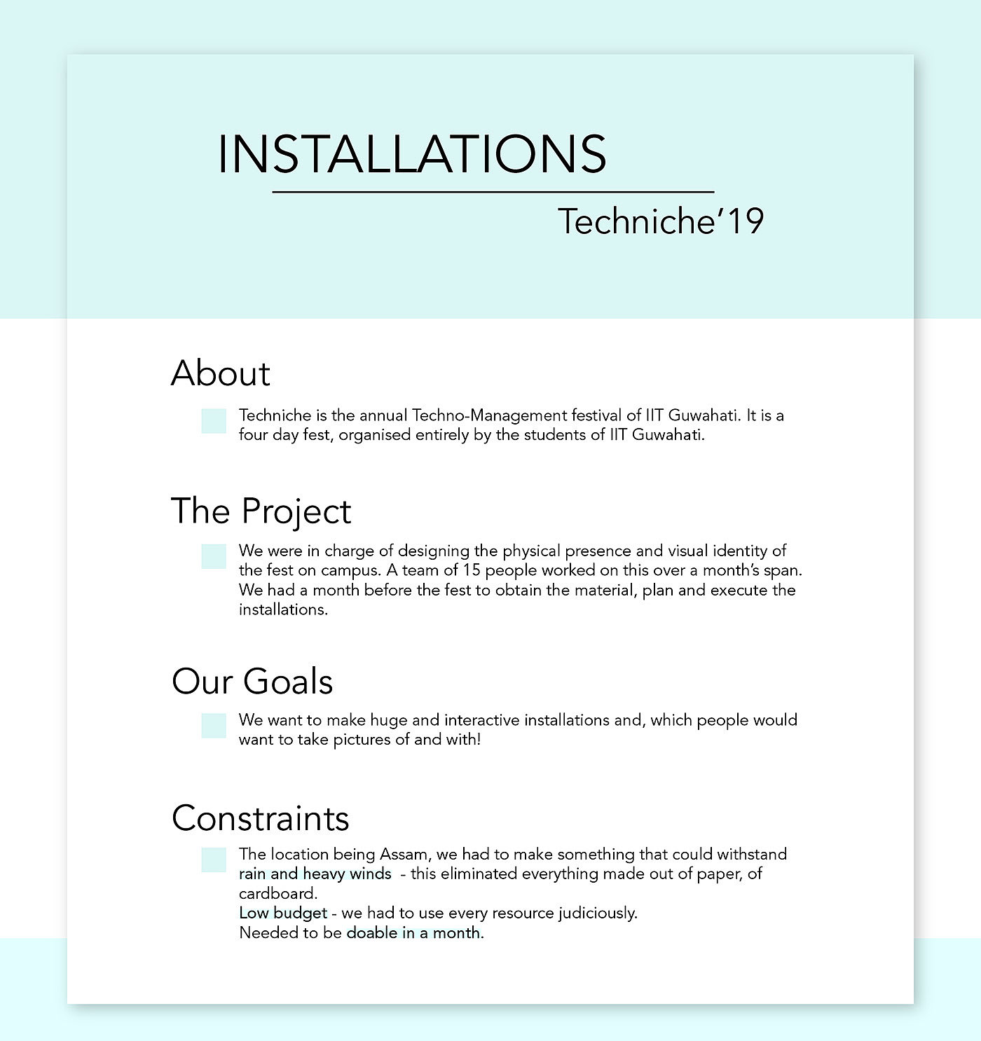 Installations - Techniche'19