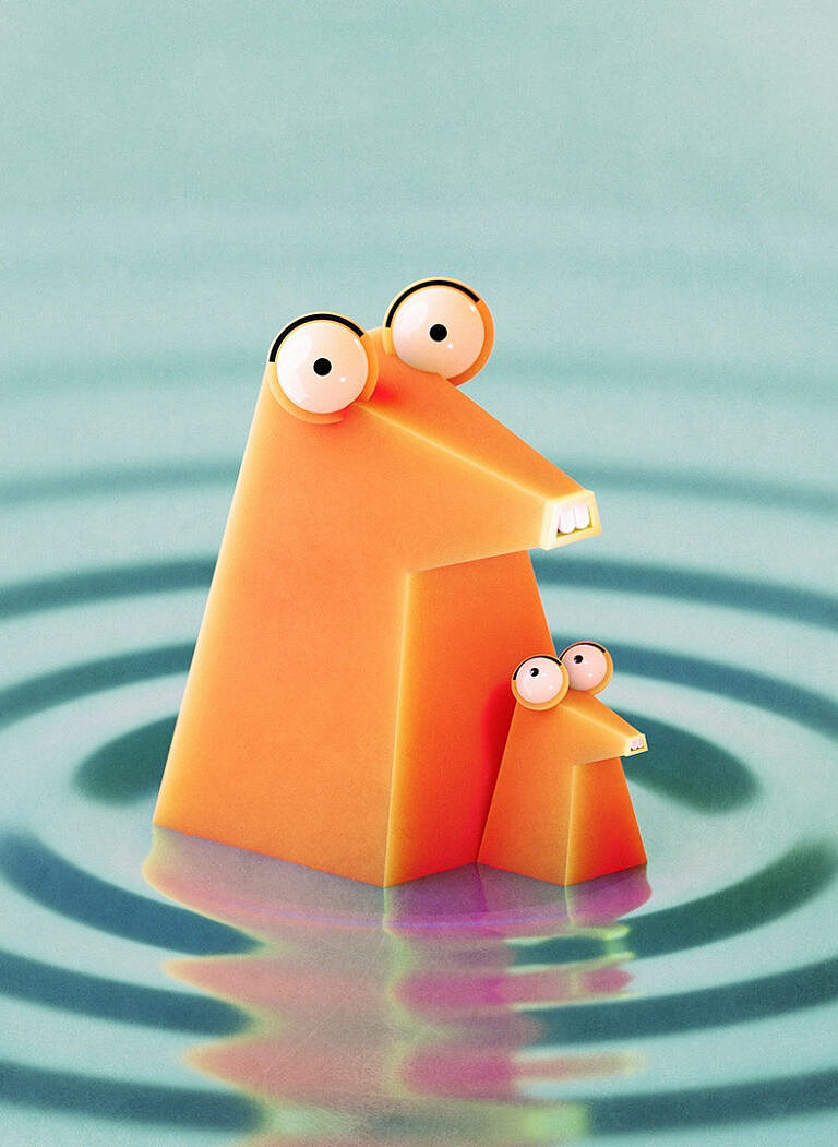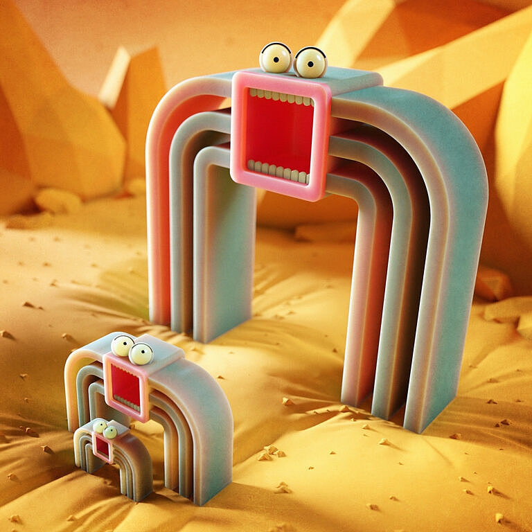 Blue Character Graphic design Milky Orange Red Rendering / CGI Triangle Yellow