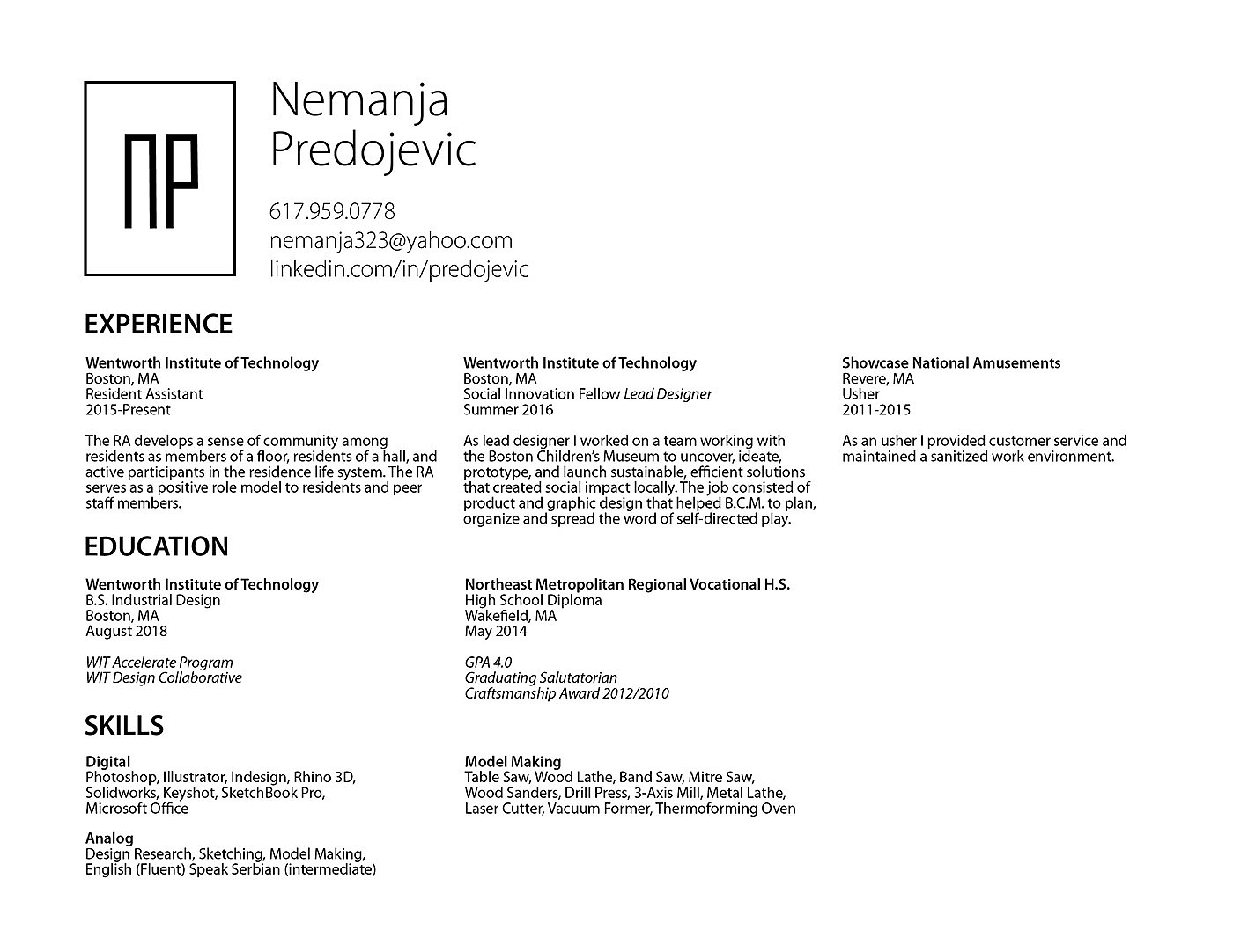 Industrial Design Portfolio 2016