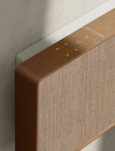 Bang and Olufsen / Beoplay Button Copper High Contrast Minimalist Seamless Speakers Textile / Fabric Tonal Wood