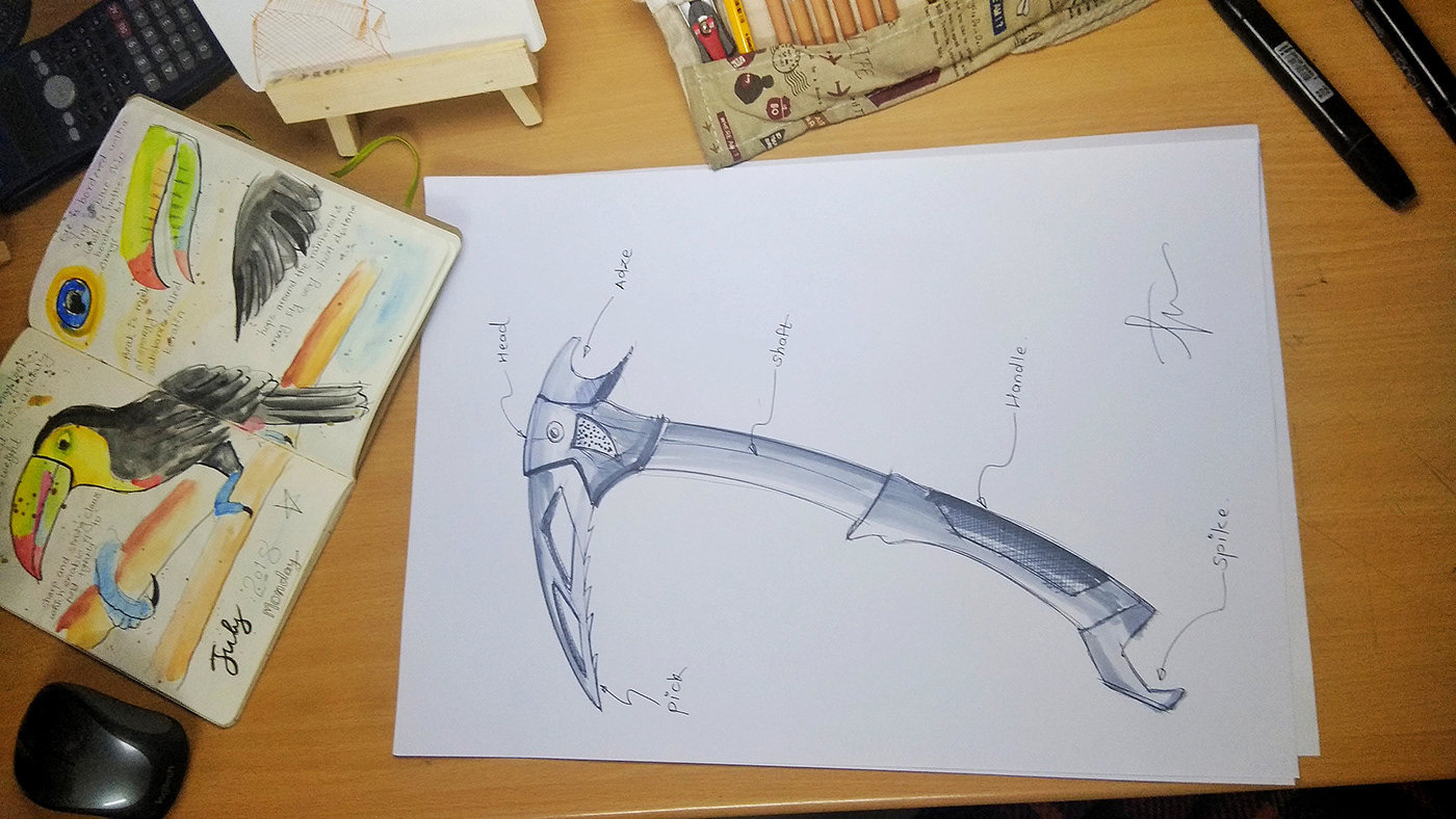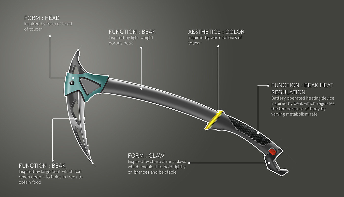 Toucan inspired climbing Axe