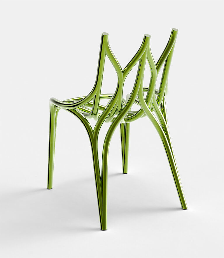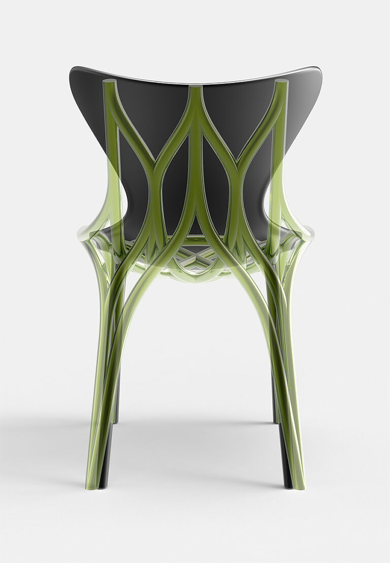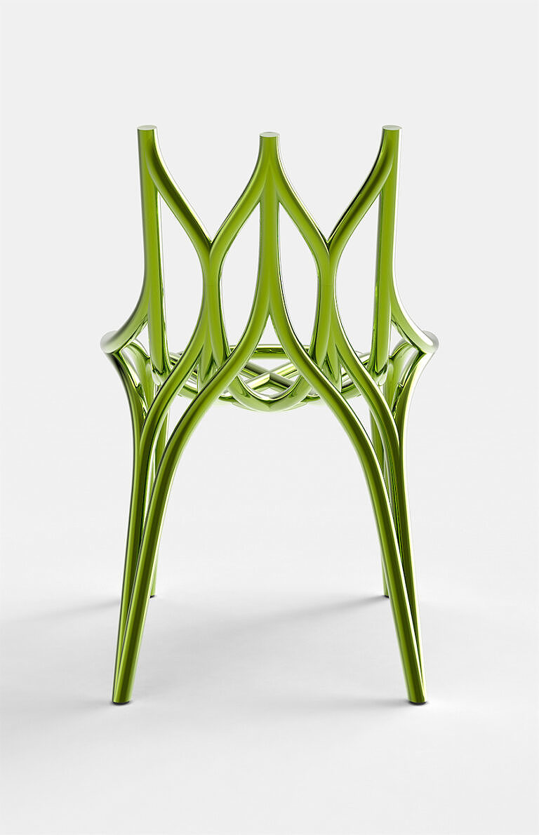 Anodized Chair Ergonomics Furniture Geometry glossy Green Minimalist Organic Parametric Rendering / CGI Structure Transparent