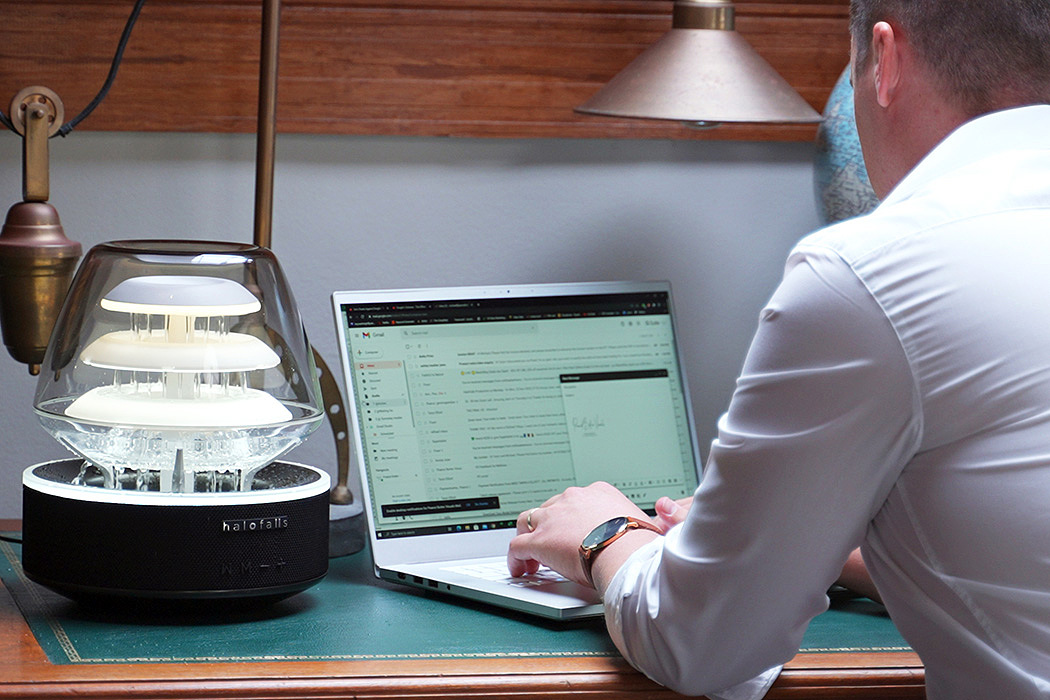 Meet the world’s only Bluetooth speaker and ambient lamp with its own internal waterfall!