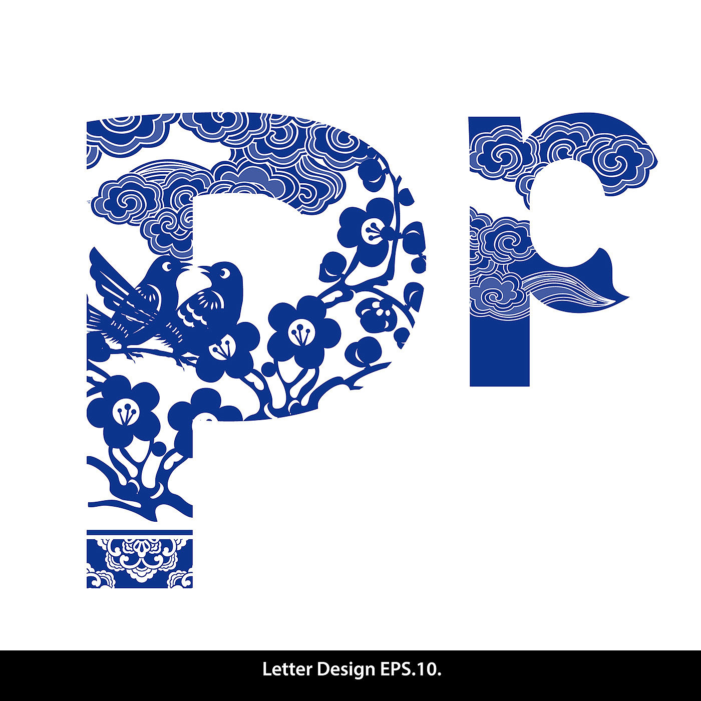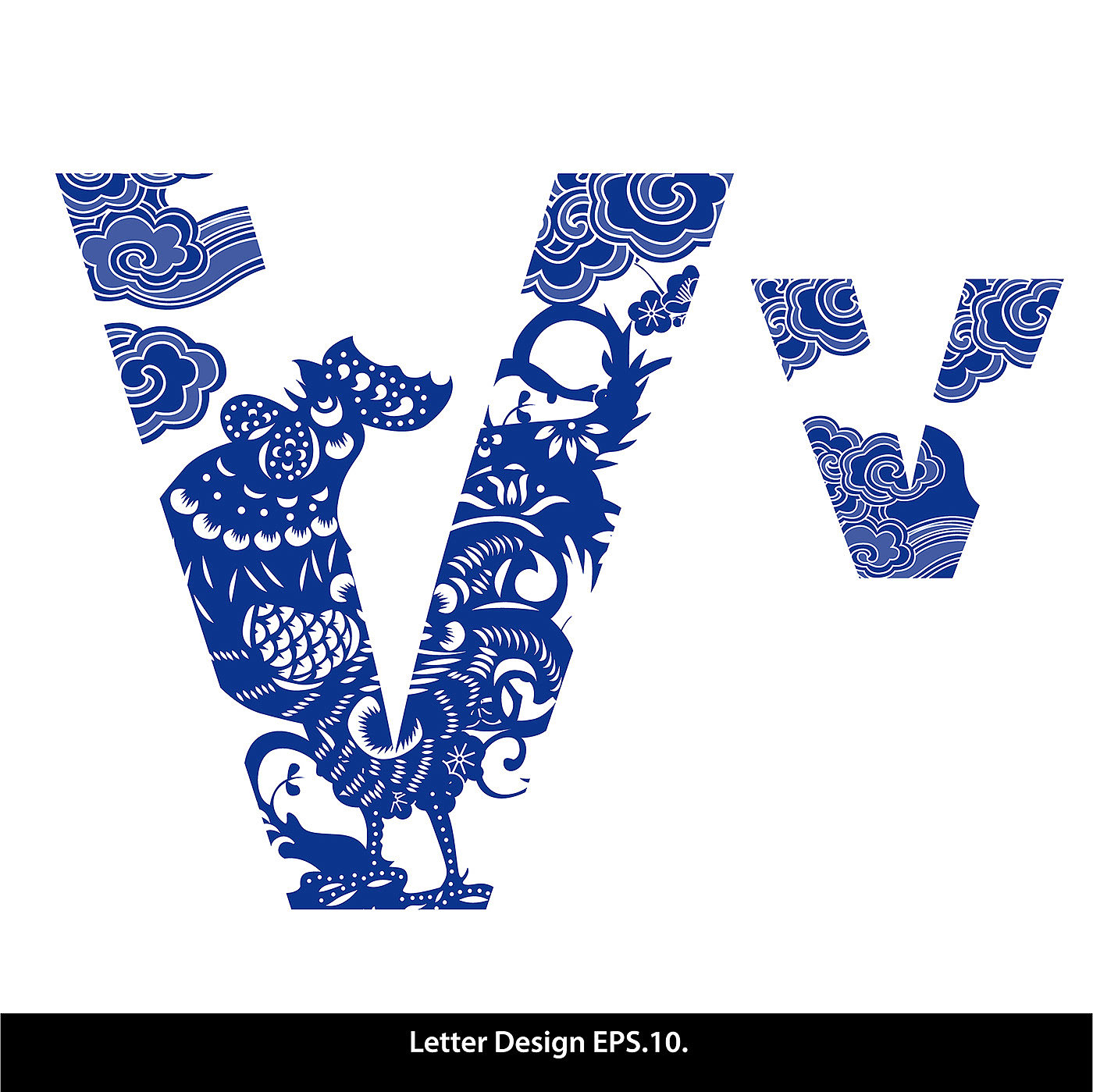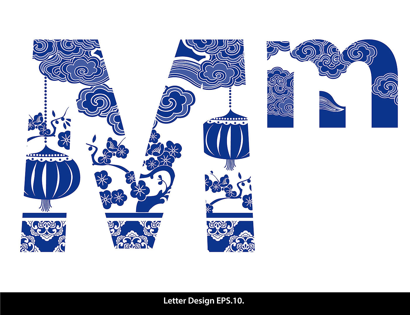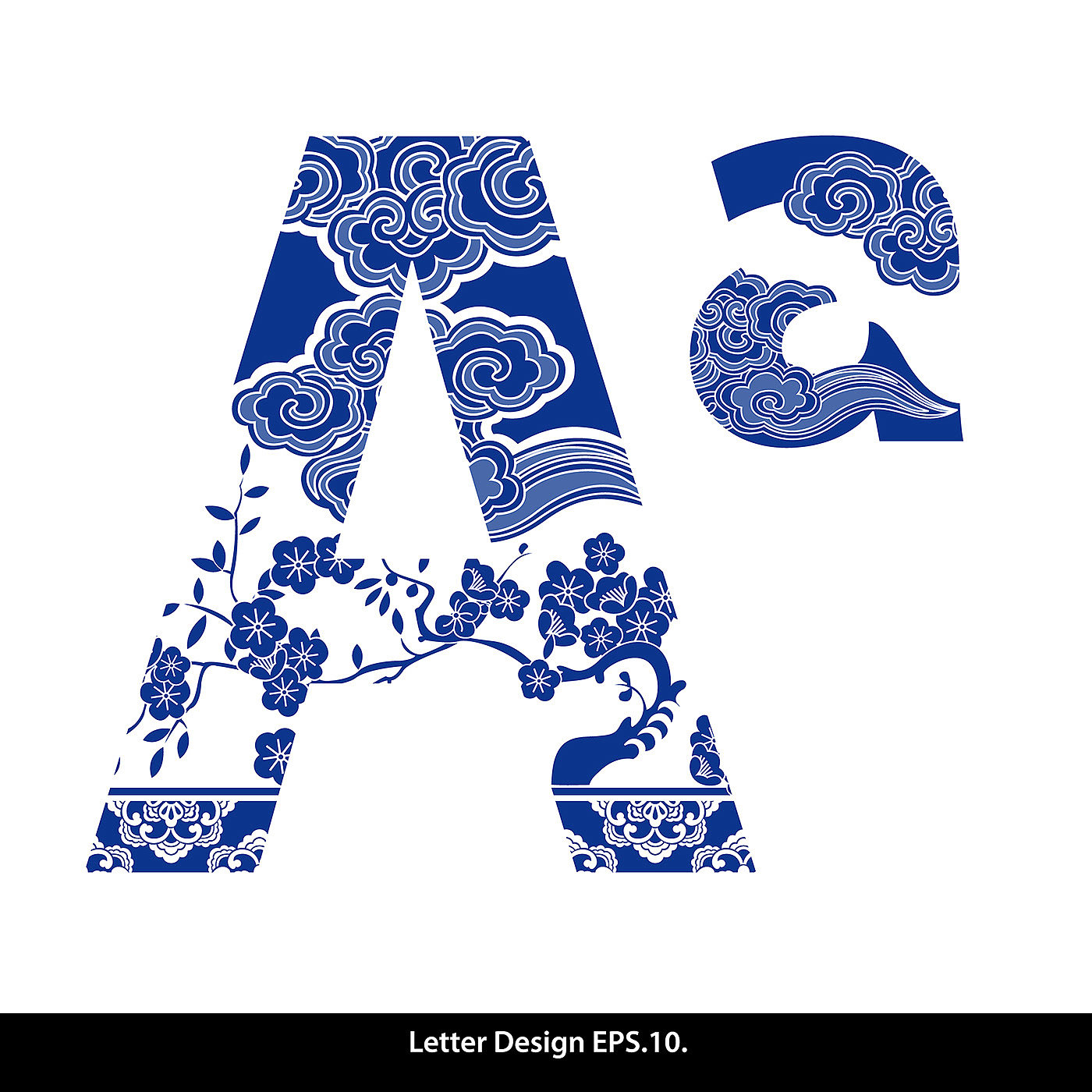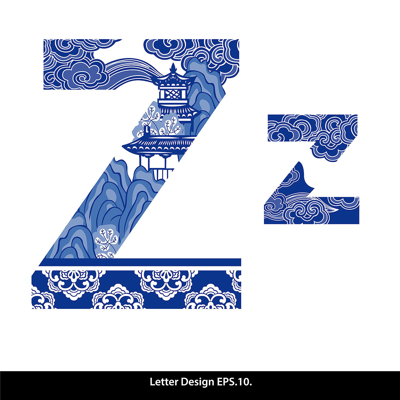 Traditional Oriental Chinese style. Alphabet a to z