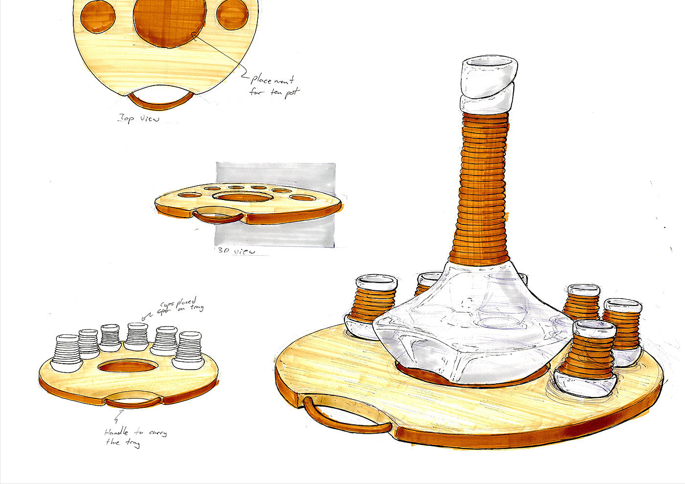 Teacup & Saucer/Tray set for tea pot