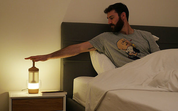 DiMO Lamp: Syringe Inspired Compact Lamp with A Wooden Lever