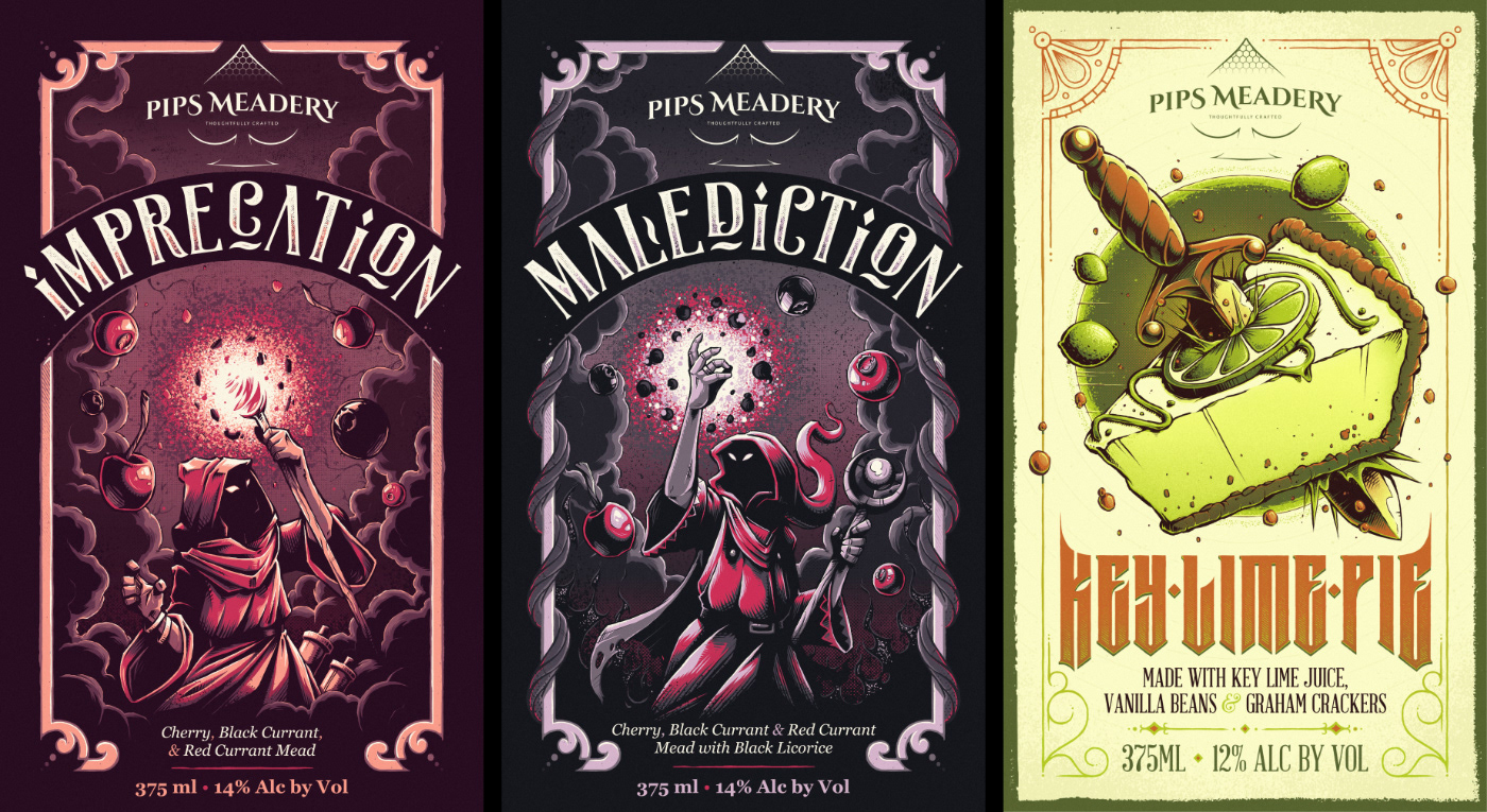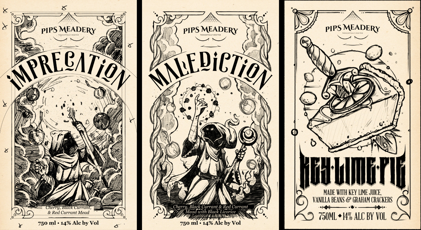 Pips Meadery // Label Illustrations
