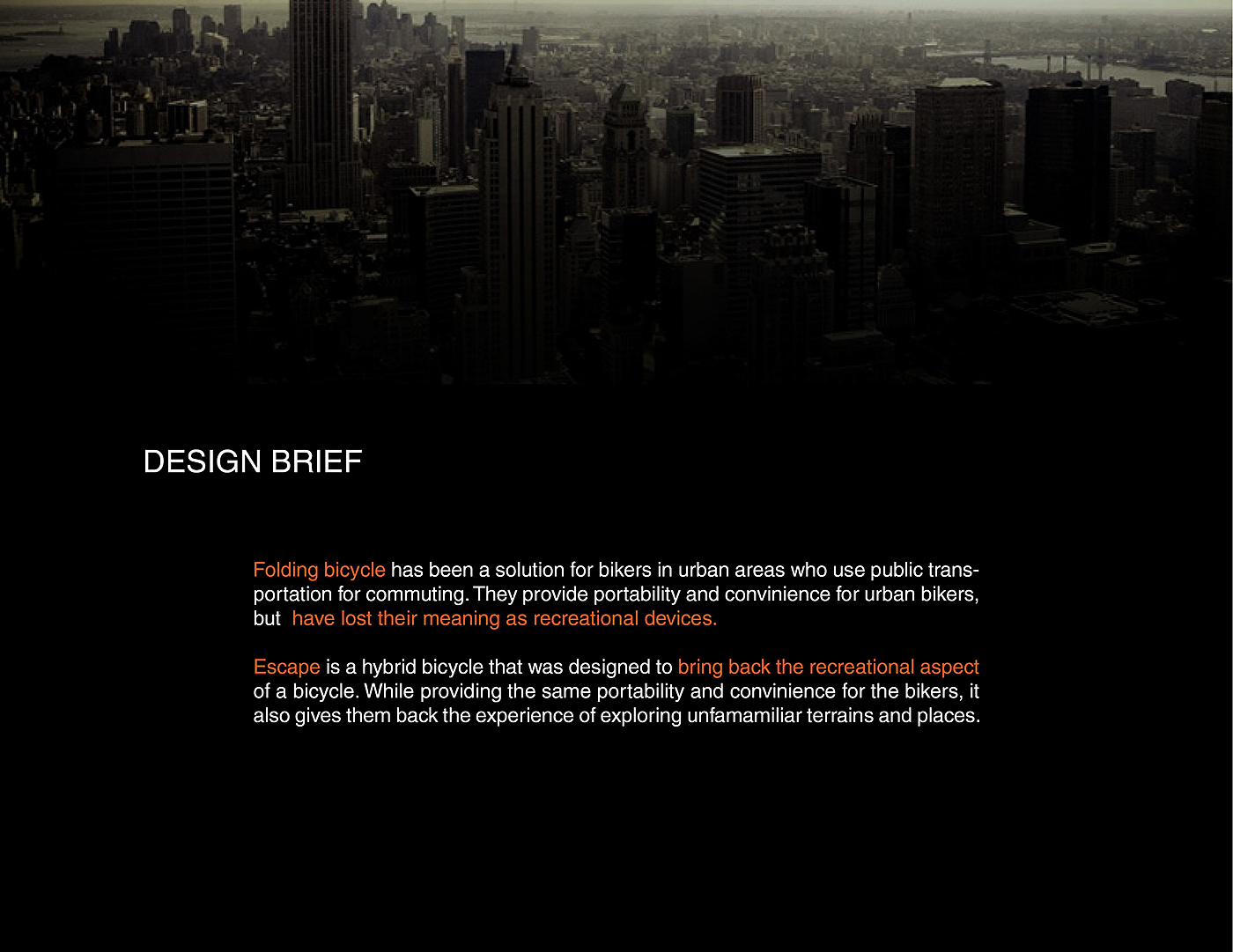 Escape, a recreational bicycle for urban dwellers