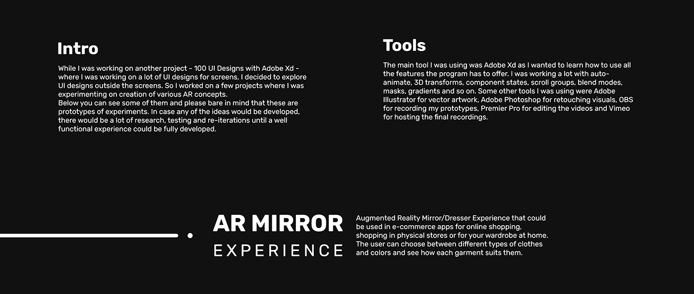 AR Design Experiments with XD
