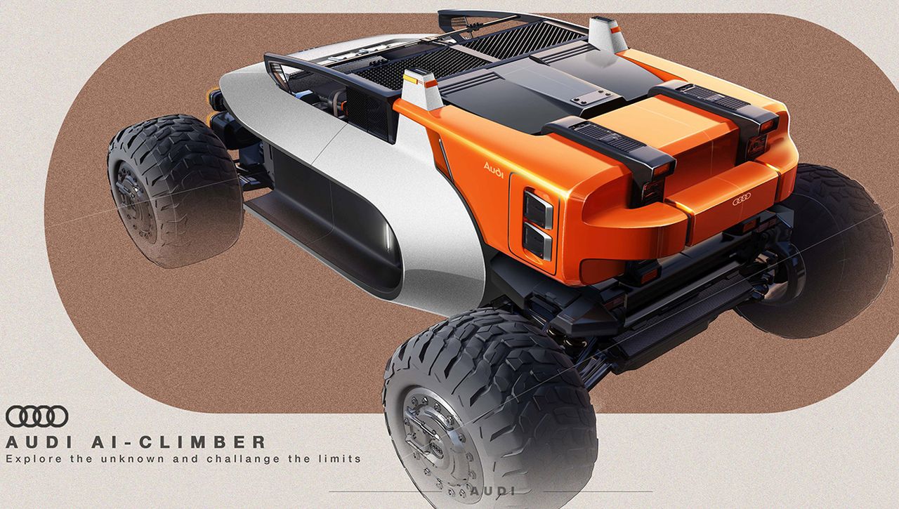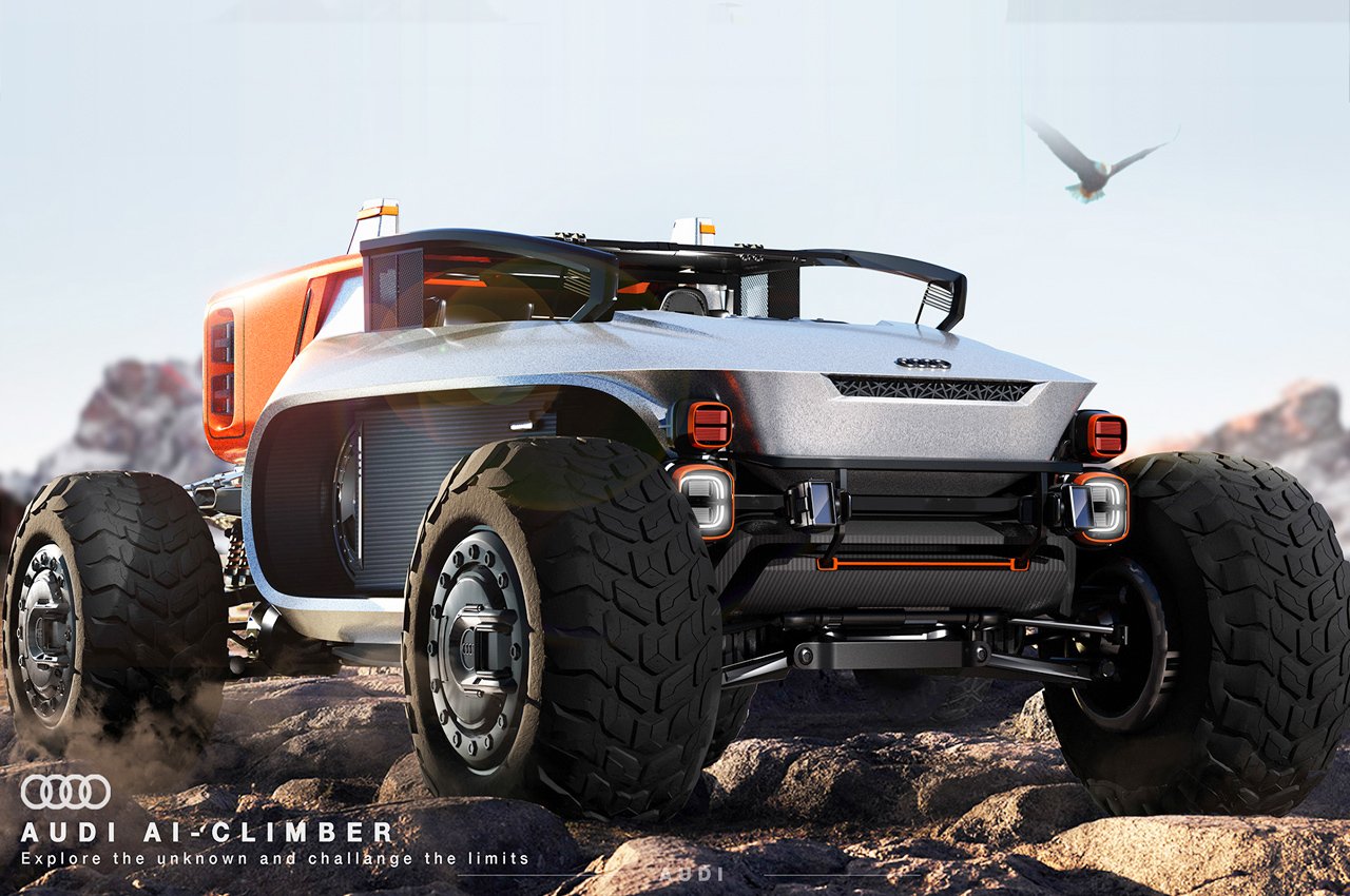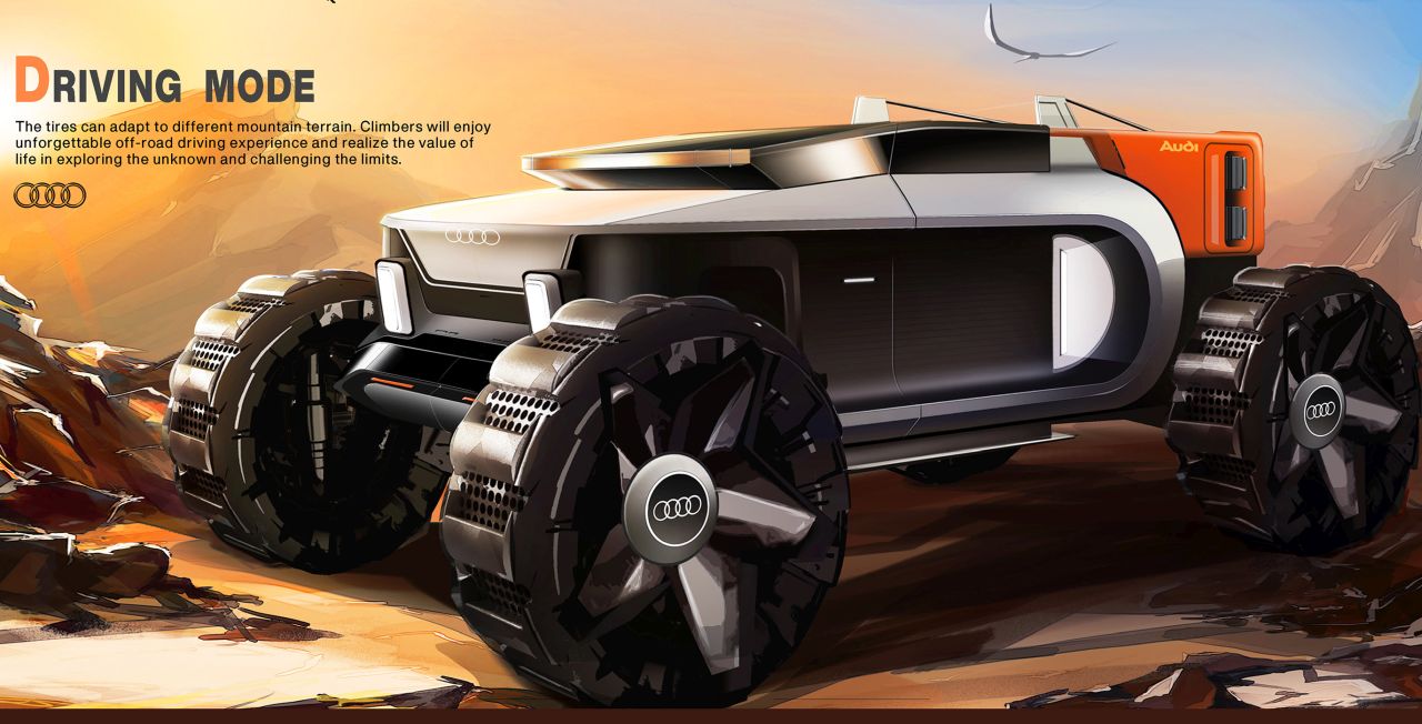 Audi AI-Climber with a flying rig for pitching tent on steep cliffs is bliss for rock climbers