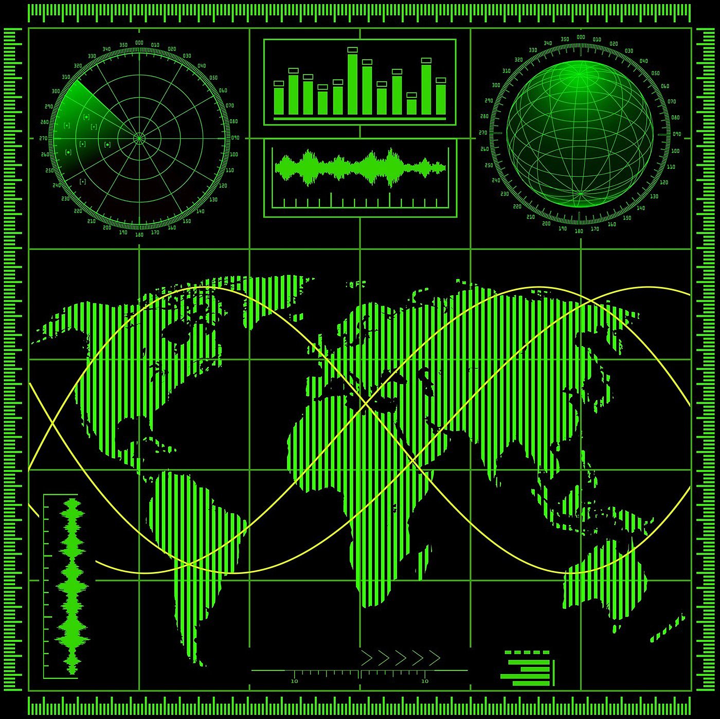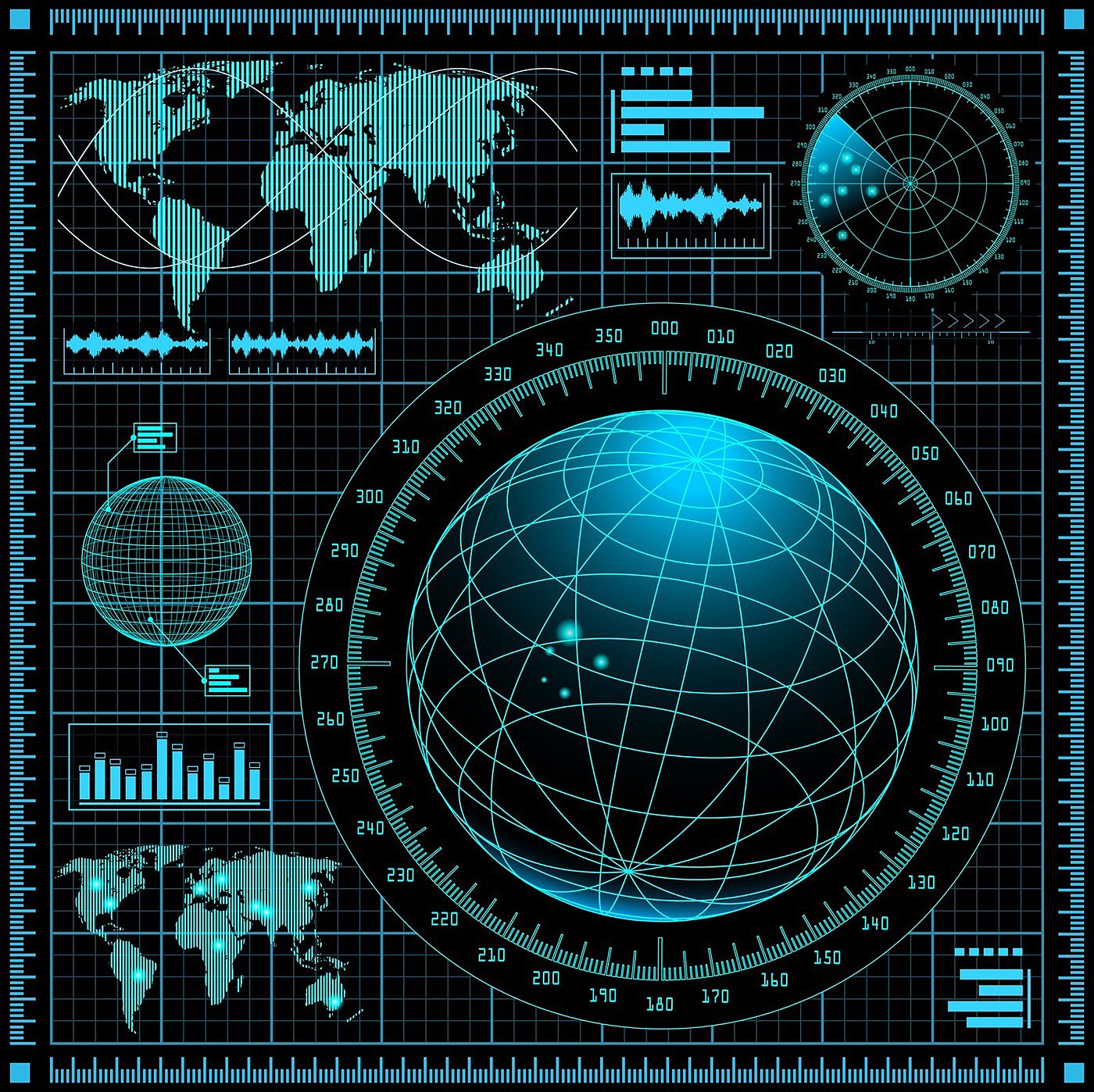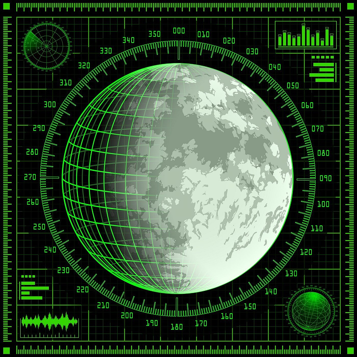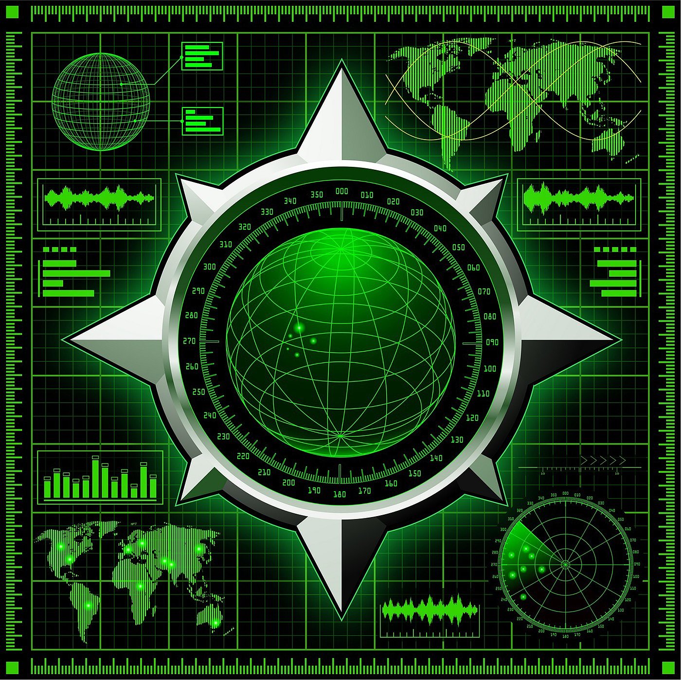 Radar screen. Four different vector illustrations.