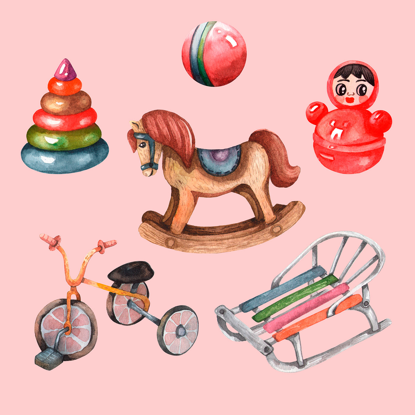 Watercolor retro toys SET