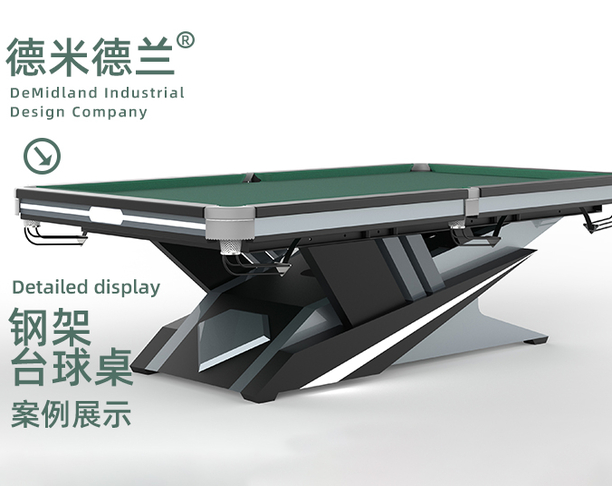 De Midland Industrial Design Steel Frame Billiard Table Product Design Case Show.