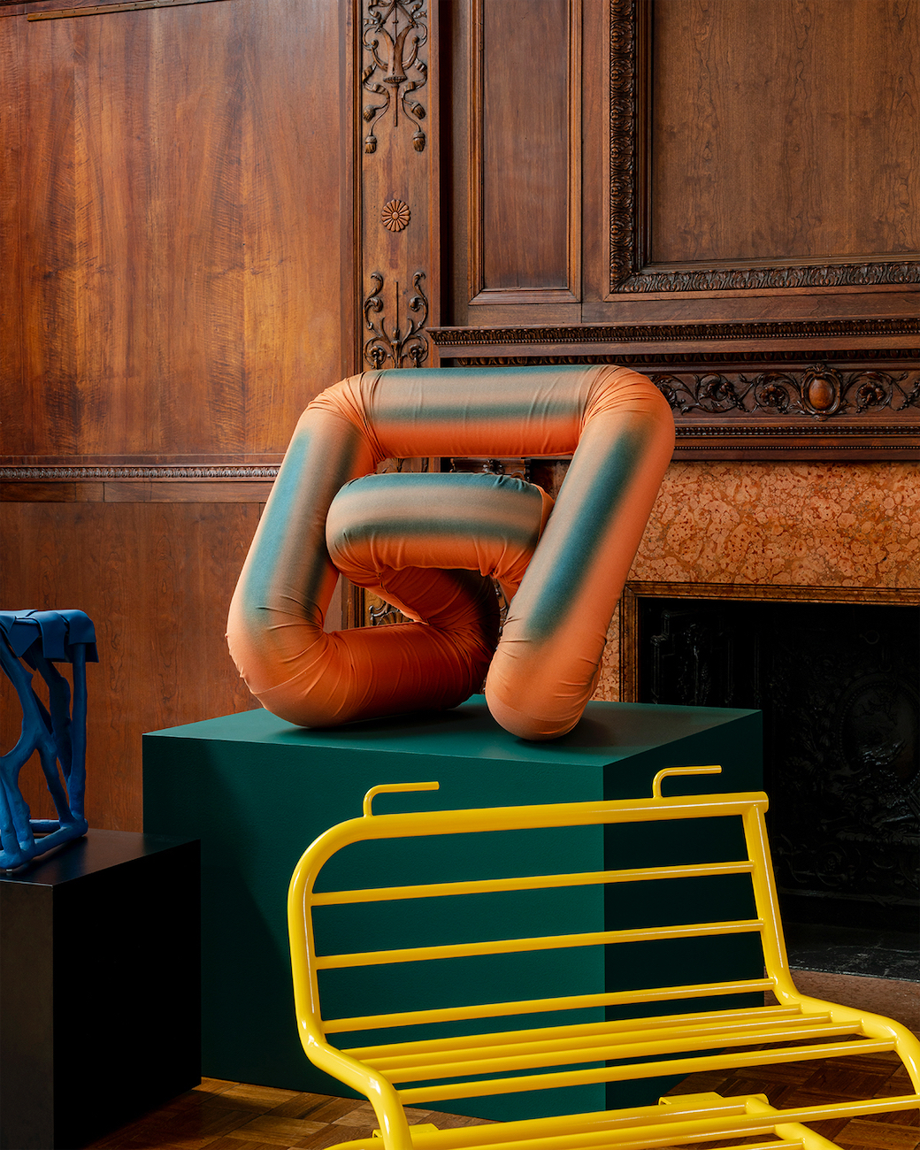 Bent over Blue Chair Furniture Green Orange Stool Table Tube / Cylinder Wood Yellow