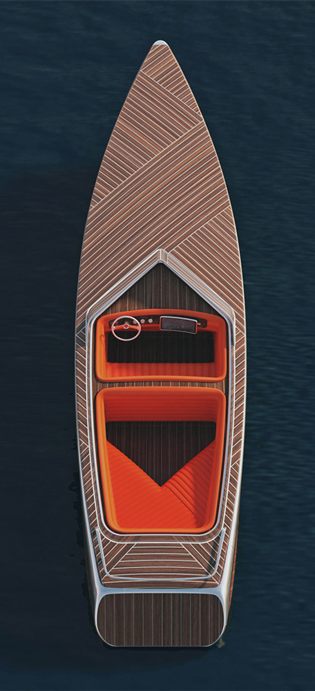 Asymmetrical Boat Bold Color Accent Furniture Luxury Orange Overlaid Lines Pattern Sofa Sport Stratified Texture Transport Wood