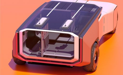 This futuristic vehicle design facilitates irrigation, agriculture and education